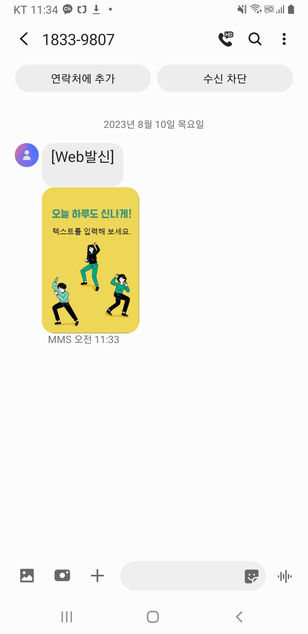 포토 이미지만 문자메시지로 발송할 수 없습니다.